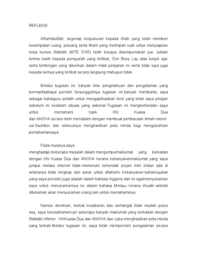 Contoh Refleksi Untuk Statistik